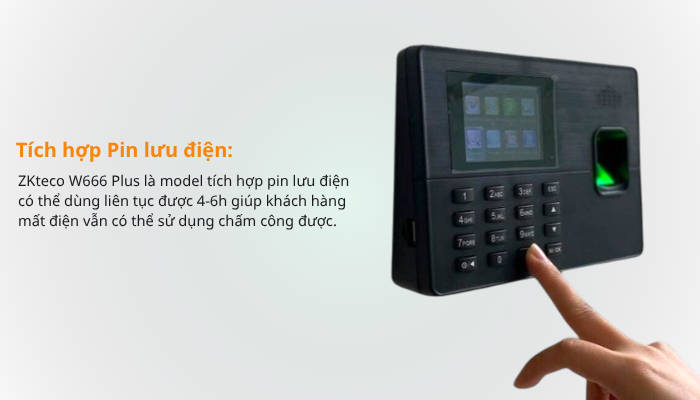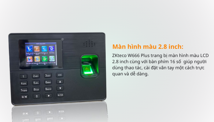 Máy chấm công vân tay ZKteco W666 Plus là dòng máy chấm công vân tay chất lượng, thiết kế nhỏ gọn, màu sắc sang trọng, giao diện menu dễ dàng thao tác và cài đặt.