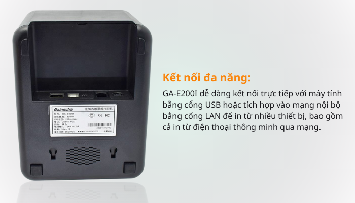 Máy in hóa đơn Gainscha GA-E200I là dòng máy in sử dụng đầu in nhiệt trực tiếp, cho hiệu suất tốc độ in tiêu chuẩn 200mm/s, dao cắt giấy rất êm tự động khi kết thúc bill.