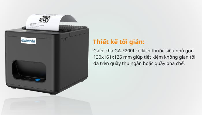 - Gainscha GA-E200I thiết kế nhỏ gọn, trọng lượng chỉ 0.8kg nhẹ hơn các dòng máy in khổ 80mm tương tự.