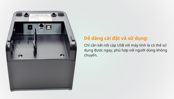 - Thiết kế "nhỏ nhưng có võ" có sức chứa giấy in bill khổ lớn 80x80mm mà không làm giảm tuổi thọ của đầu in giúp bạn tiết kiệm được thời gian thay giấy in.