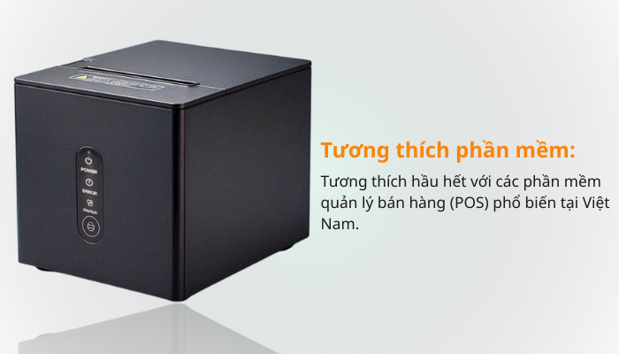 - Tương thích phần mềm: Tương thích hầu hết các phần mềm quản lý bán hàng POS phổ biến tại Việt Nam.
