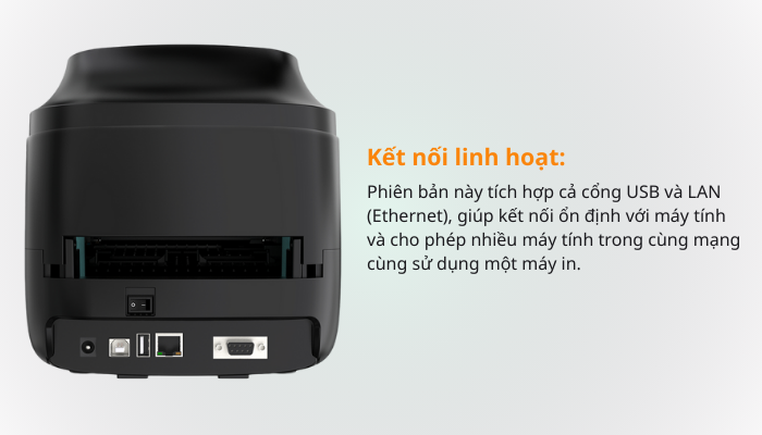Tương thích với nhiều ngôn ngữ máy in phổ biến (TSPL, ZPL, ZPL II, v.v.) và các cổng kết nối đa dạng, giúp tích hợp mượt mà vào các hệ thống hiện có.